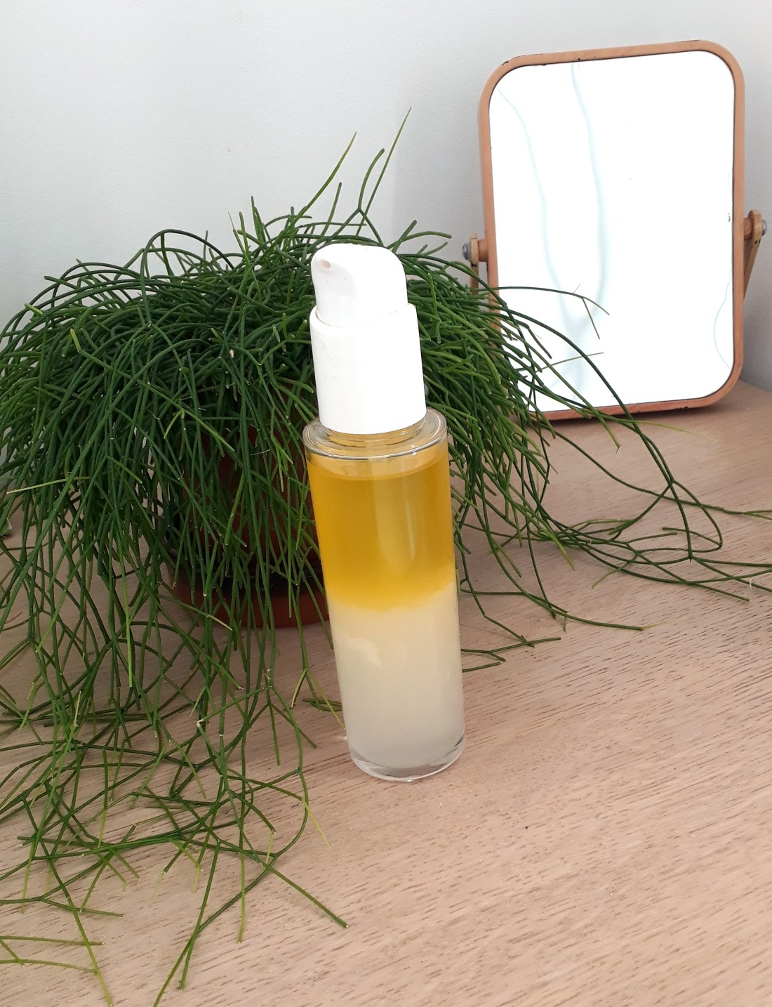 Contrairement au démaquillant classique bi-phasé que je fabriquais avant, celui-ci est plus agréable en termes d’application et de toucher beaucoup moins gras après application. La partie aqueuse est légèrement gélifiée.